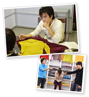 私は、ファッション業界は全く未経験での入社でしたが、現在は山口、広島、島根の地区を任され、日々駆け回っています。担当のカットソーではトレンドを取り入れつつお客様のニーズを考えて展開しています。仕事をする上で信条としているのは「お客様を待たせないスピーディな仕事」。そのためには思い切りの良さが大切です。「こうだ」と決めたら、余計な事はせず、すぐに取り組めばアウトプットも速くなります。英会話でも、英語力の有無に関わらず、外国人に話しかけるのが一番近道のはず。「自分のやりたいことをやっていく」そういう提案ができる職場です。